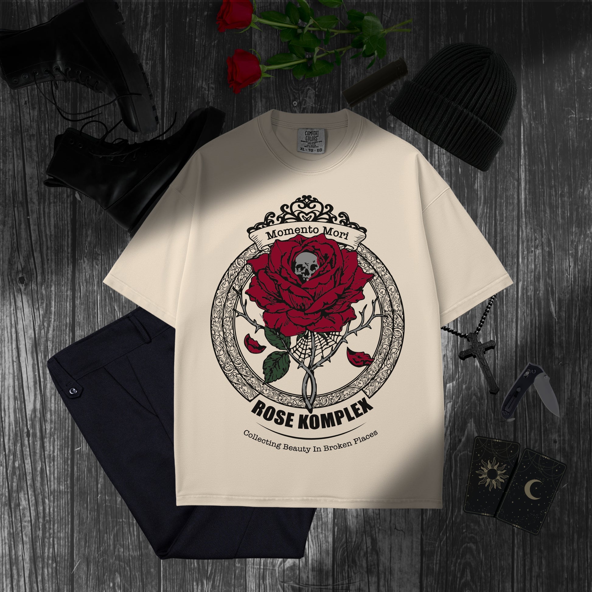 Delve into the romantic morbid depths with our signature Memento Mori Collector Tee. This isn't just apparel; it's a wearable poem, a statement for the deep thinkers and collectors of poignant beauty. The intricate graphic features our iconic rose-entwined skull, a stark, beautiful reminder of life's delicate balance and the vanitas philosophy – that even in decay, beauty persists.